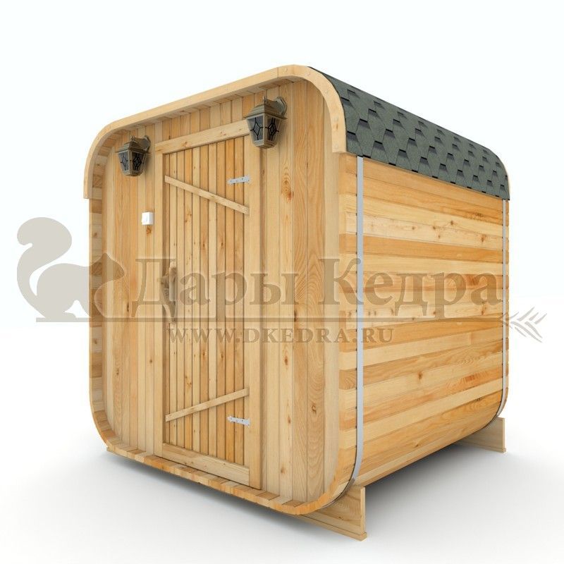 Баня-бочка круглая из кедра 3 метра Это изделие круглой вытянутой формы с двумя отделениями: раздевалкой и парной. Лавочки из кедра находятся по всей длине бани-бочки с обеих сторон. Печь расположена в парилке около дальней стены. Для удобства пользования в раздевалке установлена вешалка и полочка из кедра. За счет небольшой конструкции баня нагревается не более 30 минут. По вашему желанию баню-бочку можно дополнить печью с внешней загрузкой, благодаря которой весь мусор после топки останется на улице. Круглая баня-бочка не требует полноценный фундамент, поэтому при необходимости ее можно перенести в другое место. Обращаем Ваше внимание, что в стандартную комплектацию бани входят лавки в парной с обеих сторон. Дополнительно можно заказать полок открытого или закрытого типа! Кедр обладает ароматическими свойствами. Он не деформируется и влагоустойчив, при правильном уходе за деревом на нем не развиваются грибки и плесень.