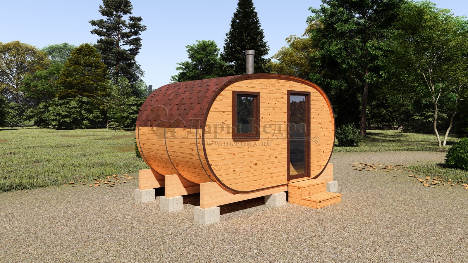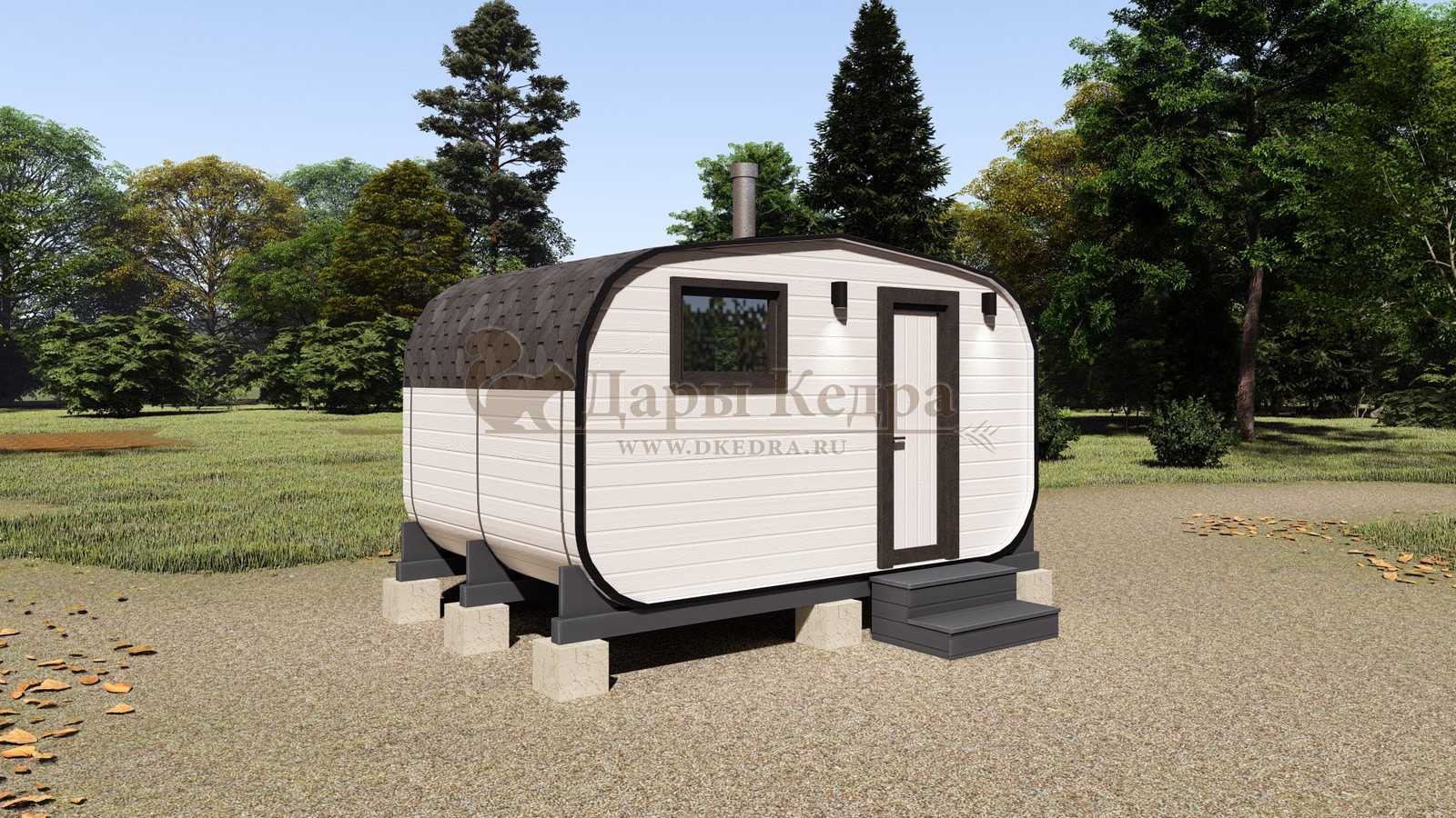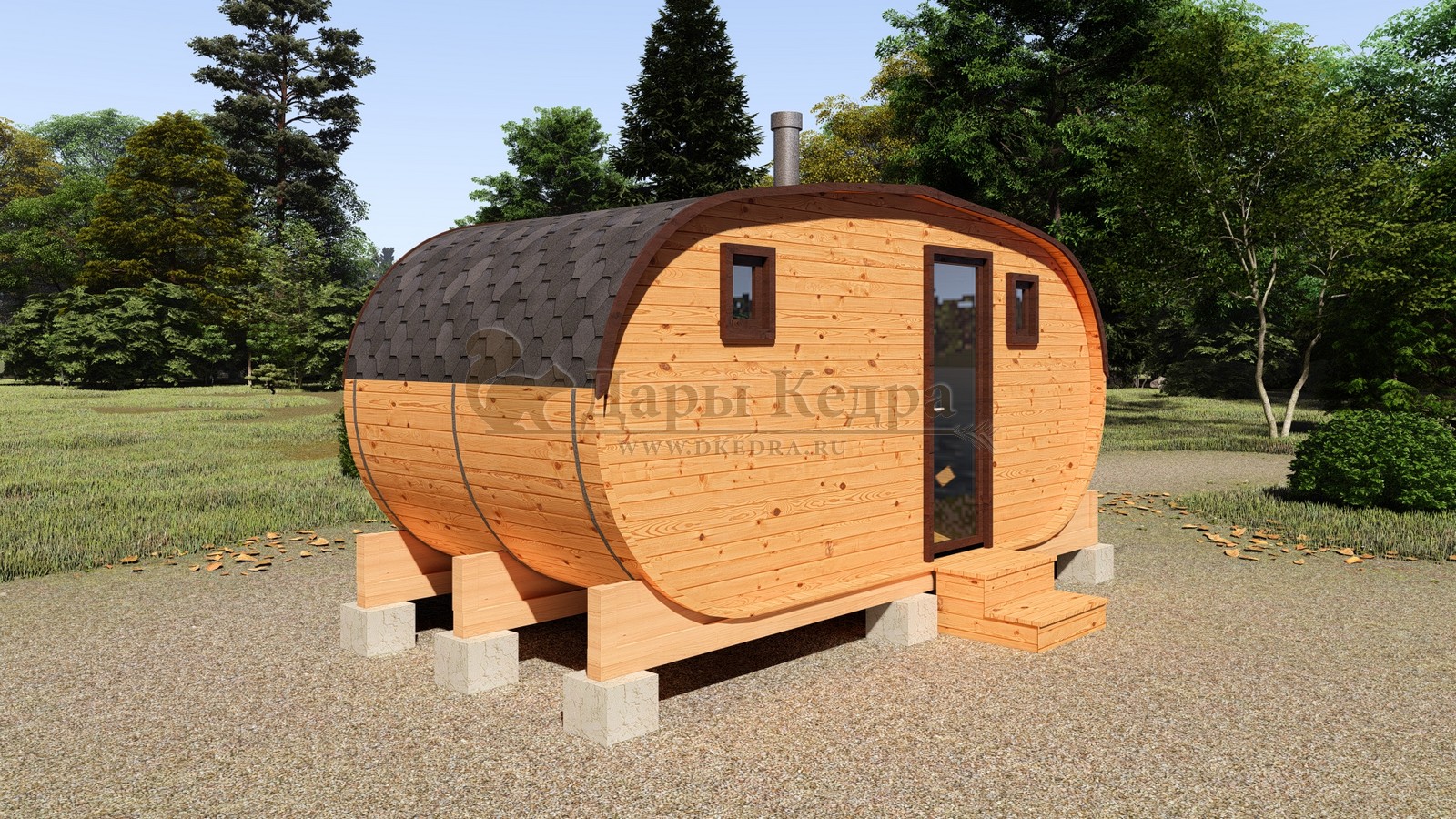 Каждая баня-бочка поставляется в полной комплектации "под ключ", включая печь, дымоход, электрику, бак для воды и мягкую кровлю. Благодаря мобильности конструкции, установка не требует капитального фундамента — достаточно ровной площадки или бетонных блоков.