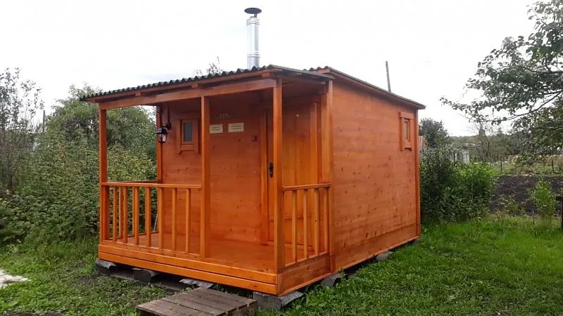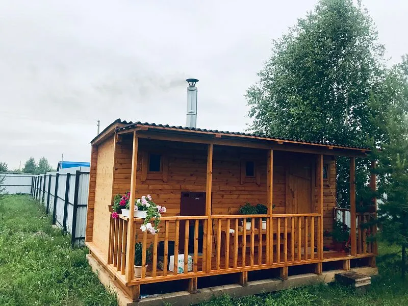 Каркасно-щитовая баня из кедра «Мини» с верандой Это классическая прямоугольная модель бани с двумя отделениями: парилкой и раздевалкой. Для удобства пользования раздевалка оснащена лавочкой и вешалкой. Парилка оборудована двухуровневым открытым полком и печью. За счет небольшой конструкции баня нагревается в течении 30 минут. На просторной веранде можно оставить вещи или отдохнуть после парения. Каркасно-щитовую баню можно заказать как в готовом, так и в разборном варианте. В разборной модели готовые щиты из кедра быстро собираются в полноценное строение, что также позволяет исключить лишний строительный мусор. Такая баня не требует полноценный фундамент, поэтому при необходимости ее можно перенести в другое место. Обращаем Ваше внимание, что в стандартную комплектацию бани входит полок открытого типа в парной. Дополнительно можно заказать полок закрытого типа или лавку! Древесина кедра насыщена эфирными маслами и фитонцидами, которые активируются при воздействии температур. Таким образом, парение в каркаско-щитовых банях из кедра становится еще полезнее.