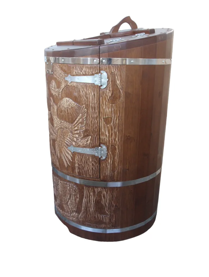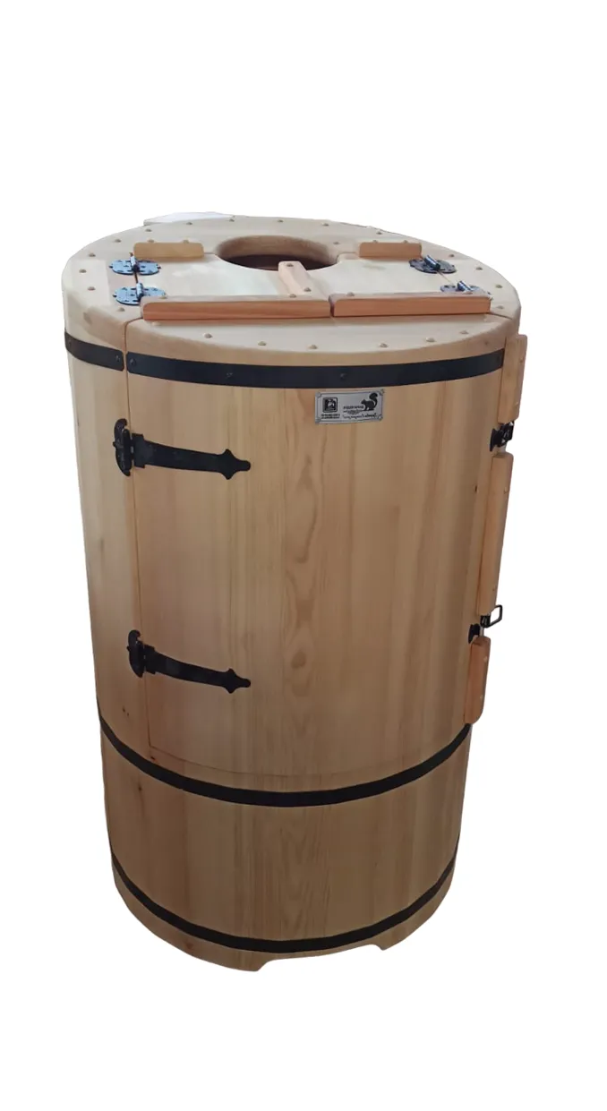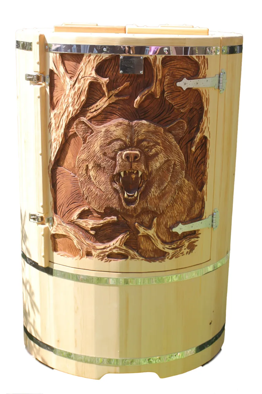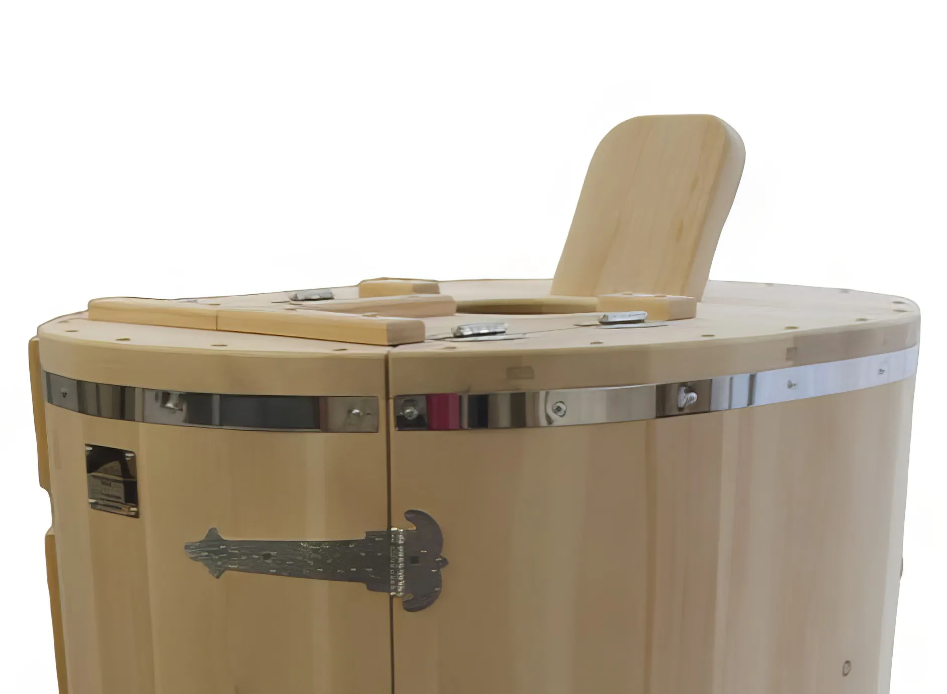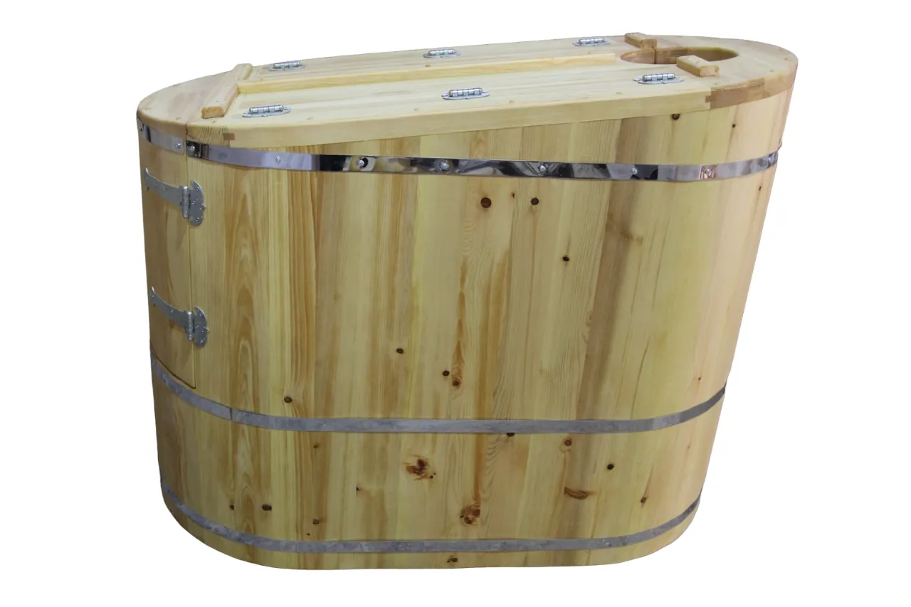 Двухместная фитобочка из кедра - это парная, в которой удобно принимать процедуры двум людям. Она оборудована откидными створками, дверцей, отверстием для головы и перегородкой (по желанию). Толщина стенок составляет 25 мм. Во время парения человек находится внутри кедровой бочки, а голова снаружи. Благодаря этому исключается возможность перегрева. Подлокотники из кедра и внутренние ручки делают эксплуатацию фитобочки более удобной.