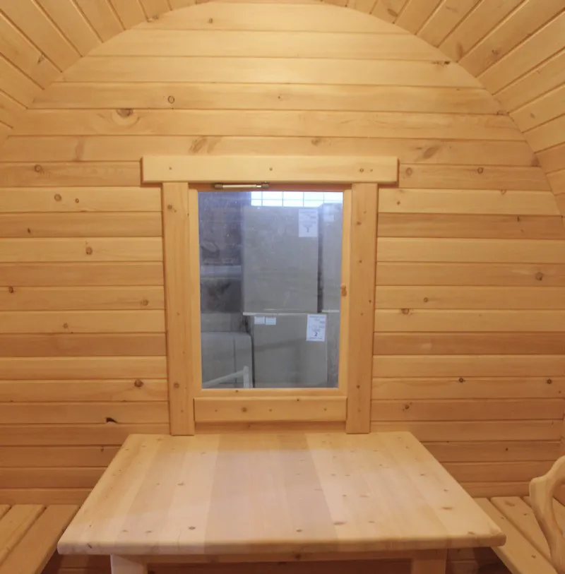 Компактный однокомнатный домик подойдет для дачного использования в теплое время года или обустройства загородных баз отдыха. Домик оборудован двумя лежаками из кедра, между которыми пользования можно поставить откидной столик. Для удобства пользования кемпинг дом можно укомплектовать верандой с лавочками или козырьком.