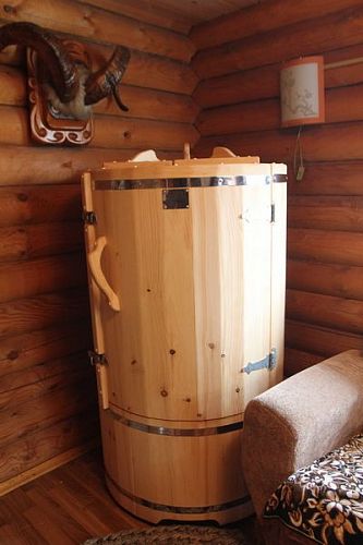 Покупали такой комплект для дачи, установили в комнате отдыха в бане. Удобно очень, когда народу много в семье и все хотят попариться. Дети, кстати, предпочитают больше греться в бочке, чем в парной бани.