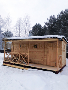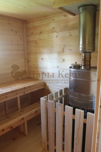 Заказывали как летний домик с дополнительными окнами и расширенной верандой, получилось очень интересно. А вместо полков у нас были лежаки. Сами купили матрасы в размер. На первое время вообще было очень удобно, потом достроили дом, переехали туда, а этот переоборудовали в баню. Докупили печь в Дарах Кедра. Все просто т удобно.