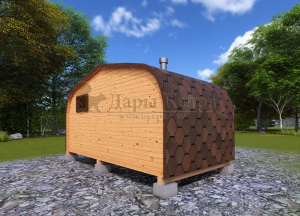 Баня-бочка представляет собой конструкцию в виде бочонка без углов. Такая форма считается оптимальной для равномерного распределения пара по всей внутренней поверхности парной. Таким образом, пар не скапливается в одном месте, а циркулирует по всему объему. Соответственно, круглая (квадратная, овальная) баня экономичная: топится быстро, требует дров мало.