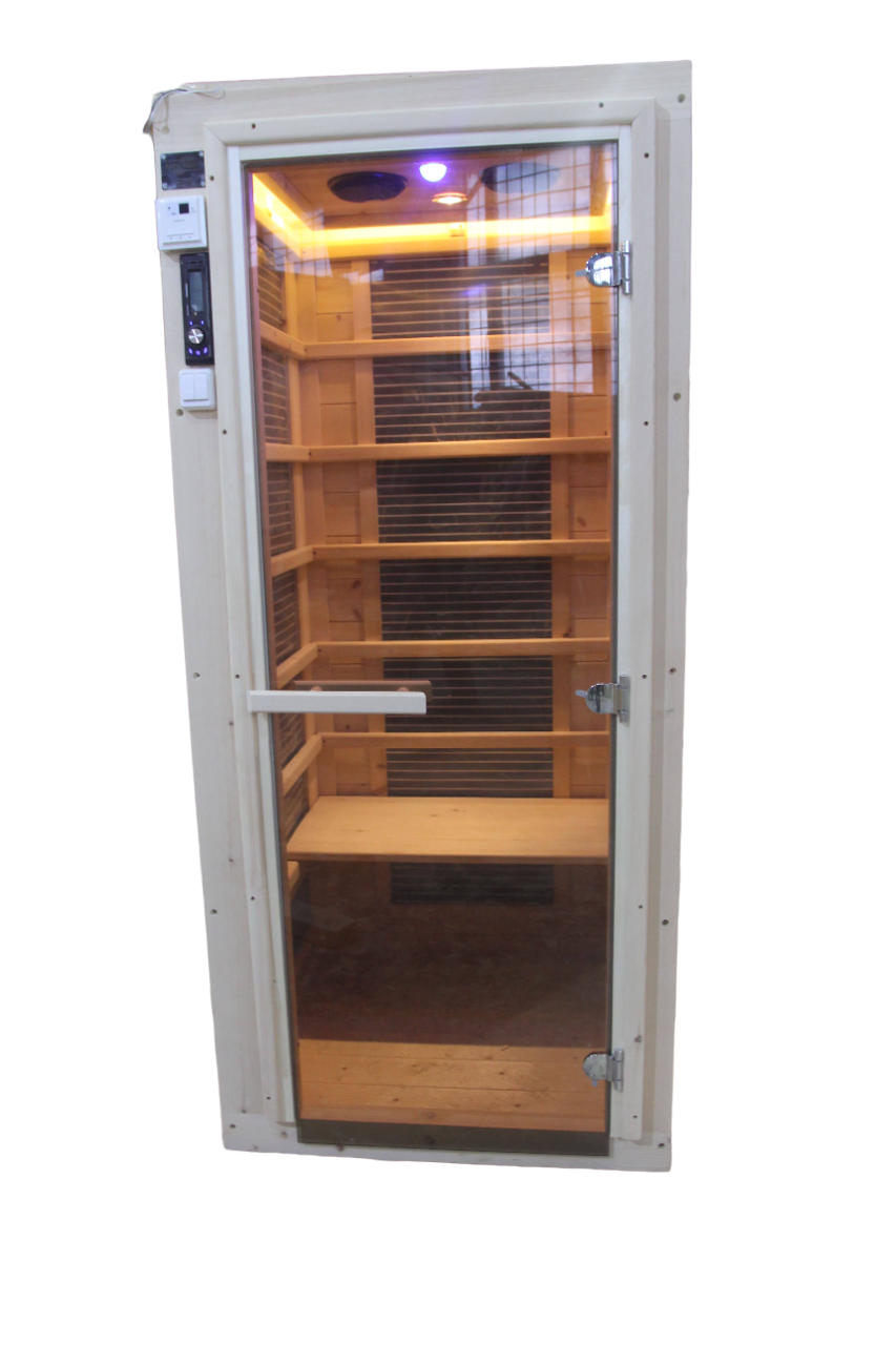 Это специально оборудованная готовая деревянная кабина для сухого и влажного парения. Электропечь нагревает пространство внутри и позволяет сбрызгивать камни водой, слегка увлажняя воздух. Такая процедура позволяет избежать перегрева. Сауна обшита снаружи и внутри кедровой вагонкой и имеет теплоизоляционный слой. Финская сауна с электропечью подойдет, как для домашнего использования, так и для коммерции. Доставляется в разборном виде щитами, собирается по инструкции с помощью шуруповёрта.
