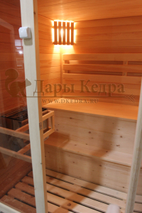Финская сауна с электрокаменкой представляет собой компактную парную кабину, изготовленную из целебной древесины сибирского кедра. Финская