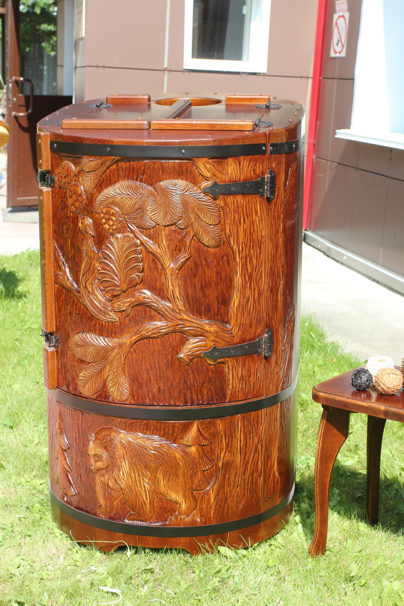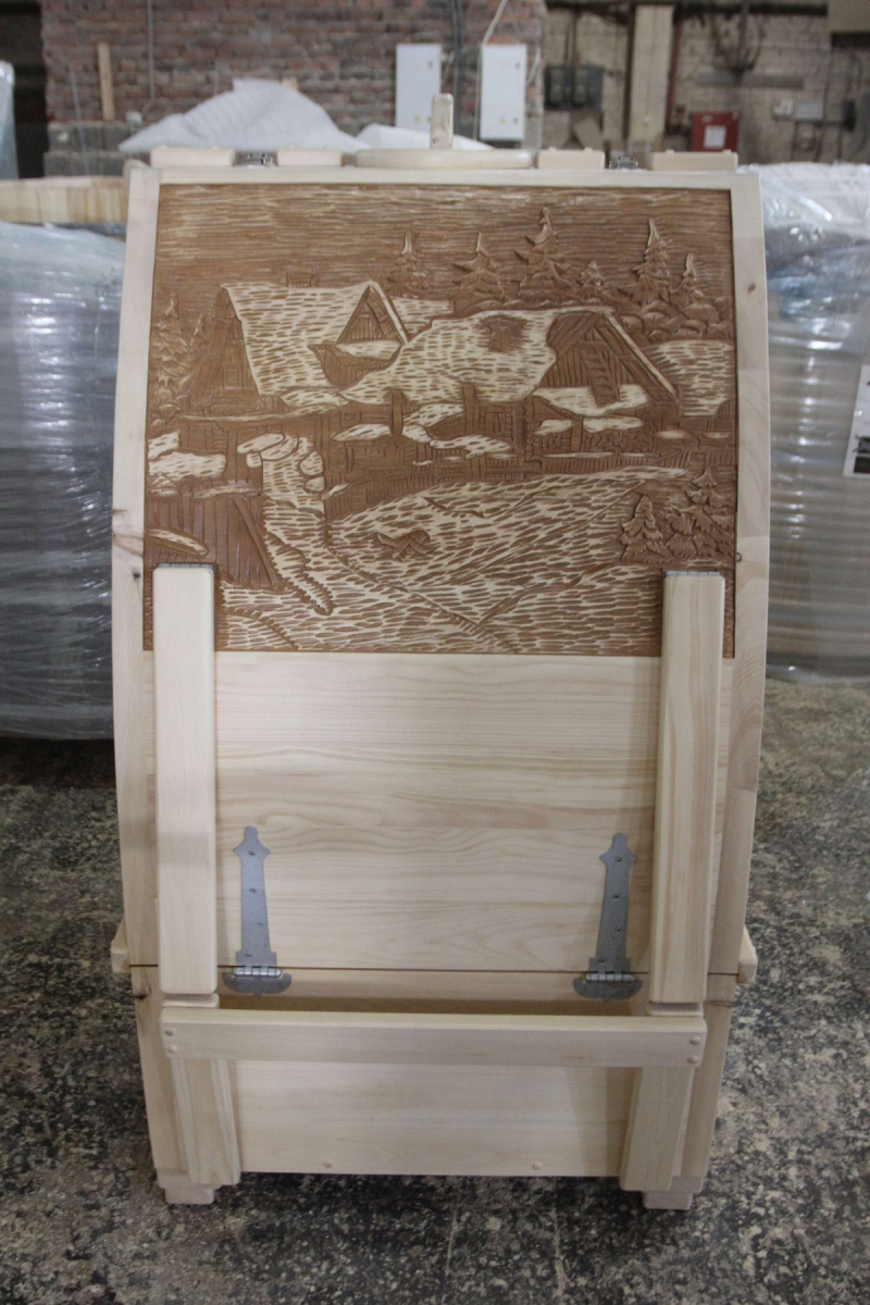 Готовый комплект - это полностью укомплектованный набор с фитобочкой для процедур парения. Круглая модель наиболее компактна и мобильна. Толщина стенок составляет 25 мм. Фитобочка оборудована откидными створками, дверцей и отверстием для головы. Во время парения человек сидит внутри кедровой бочки, а голова находится снаружи. Благодаря этому исключается возможность перегрева. Подлокотники из кедра, встроенные ручки на створках и двери делают эксплуатацию более удобной.
