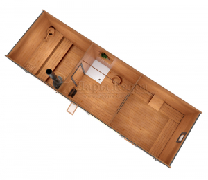 При оформлении заказа на кемпинг-дом обязательно добавьте шкаф, он точно вам пригодится для размещения вещей. Внутри - полки и штанга для аккуратного размещения одежды. Высота - 1,8 м, ширина - 0,9 м, глубина - 0,45 м.