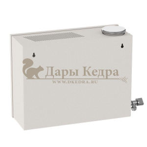 Парогенератор накопительного типа, с объемом бака 6,5 литров, отлично подойдёт для коммерческого и домашнего применения - в увеличенных кедровых бочках, душевых, для увлажнения бань и саун. Рассчитан на объем парной до 4 кубов.