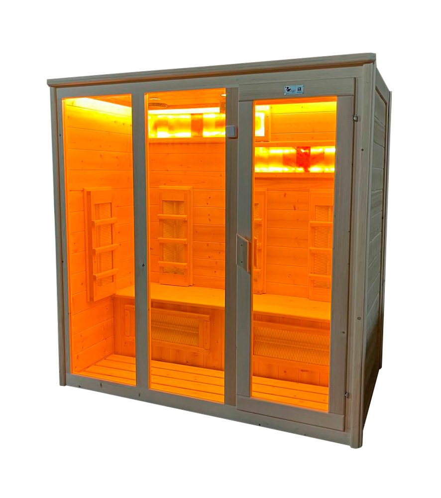 Двухместная инфракрасная сауна кабина из кедра и липы с керамическими излучателями Это специально оборудованная кабина из липы для прогрева тела человека сухим теплом. Воздух в таких парных не нагревается. Инфракрасные лучи воздействуют на тело, равномерно прогревая мышцы, суставы и органы. Керамические излучатели похожи на лампы, имеют высокую температуру нагрева, поэтому защищены противоожоговыми решетками. Тело человека в таких саунах нагревается интенсивнее. Работает кабина за счет электричества. Двухместная инфракрасная сауна с керамическими излучателями подойдет как для домашнего использования, так и для коммерции. Обращаем Ваше внимание, что в стандартную комплектацию входит трапик для ног, но вы можете его заменить на цельный пол совершенно бесплатно!
