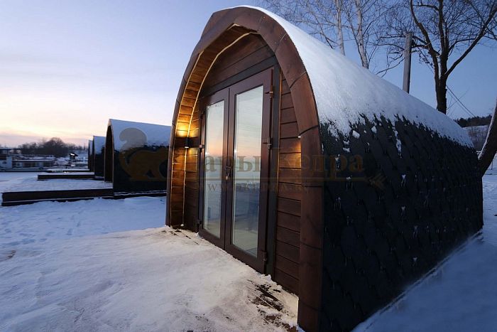 На данный момент существуют варианты кемпингов без утепления и с утеплением. Второй вариант представлен двумя моделями: викинг-дом и утепленный зимний кемпинг-дом. Особенностью таких моделей является наличие утепленного пола с покрытием - ламинат. Организованная пароизоляция под кровлей обеспечит хороший воздухообмен и не позволит скапливаться лишней влаги внутри помещения. Кроме того, в стоимость такой постройки уже включены водонагреватель, туалет, душ. Гибкая черепица по всей площади крыши также является дополнительной защитой от неблагоприятных условий внешней среды и возможностью сохранять тепло дома на долгое время. Установленные пластиковые окна и двери - это комфортное открывание, бесшумное проветривание и надежная эксплуатация в течение десятилетий.